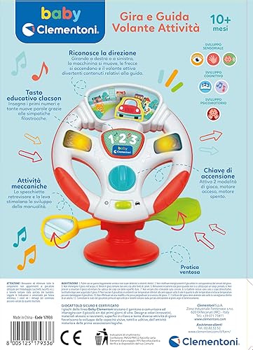 The steering wheel is equipped with a practical suction cup for easy attachment. The movable rear view mirror and gear lever provide mechanical activities that promote the development of manual skills