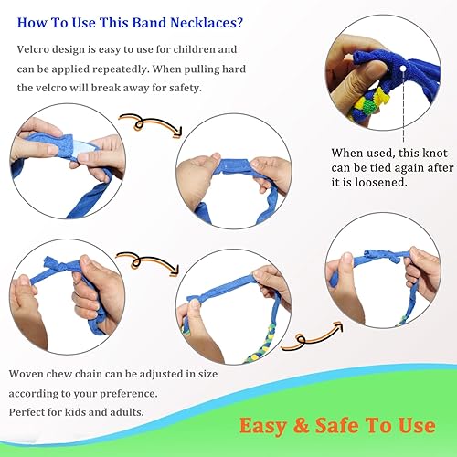 Easy to Use - The set includes 3 pcs velcro designed necklaces, which is easy to separable, makes the biting and chewing safer and prevents suffocation and accidents, and 3 pcs woven chew chain can be adjusted in size according to your preference, can be used as a bracelet or necklace as a adult or toddler chew toys.