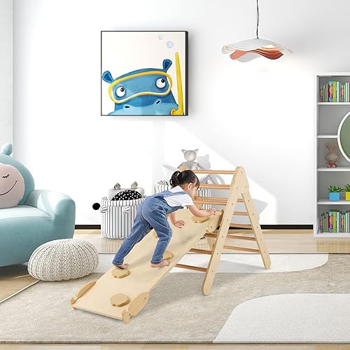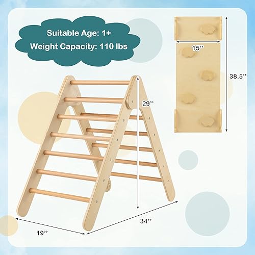 【Montessori Triangle Climbing Toys】 It is the best climbing toy for cultivating children's independence and autonomous exploration ability! The triangle ladder can be tilted as needed to climb and slide. It allows for natural gross motor development and freedom of movement. Toddlers can practice climbing and find their way over the top and slide down, while 5 or 6 year old can construct different combined shapes or build forts through their imagination. Max load 110Lbs.