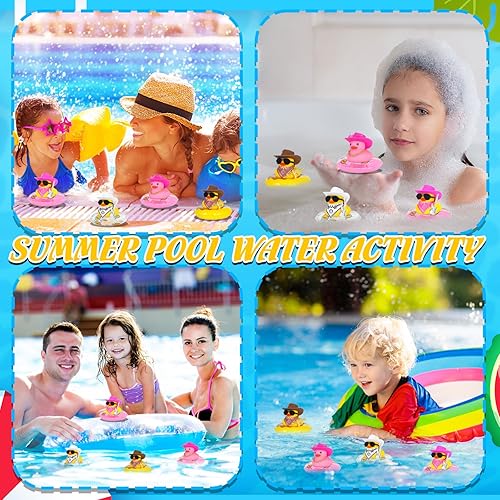 Summer Car Rubber Duck: You will receive a cute summer duck adorned with a transparent swimming ring, mini guitar, sunglasses, and bandanas, which enhance its charm and make it look more fun.