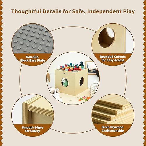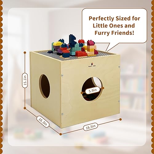 5-IN-1 MULTIFUNCTIONAL DESIGN - Outperforms ordinary activity tables with 3x more functions! The ultimate Montessori activity table for toddlers that transforms among: Kids play cube with cat house Wooden toy storage with building blocks Non-tip activity table for 2 year old ( ASTM-certified ) Building block table with storage Space-saving bedside table
