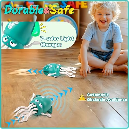 【Smart Obstacle-Avoiding Toy】Equipped with intelligent sensors, this octopus toy can detect obstacles and change direction automatically. Whether indoors or outdoors, it ensures safe playtime without the risk of bumping into objects.