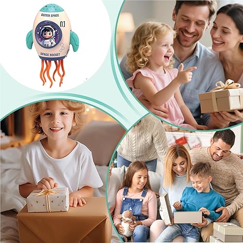 Rechargeable Dancing Rocket: Features built-in battery for long-lasting playtime; simply charge via USB for hours of music, lights, and movement