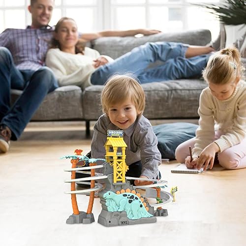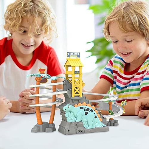 【An Immersive Dynamic Dinosaur Experience】Ignite your child's imagination and transport them into an electrifying world of adventure with our Dinosaur Racing Track Toys. This exciting electric climbing stairs track is a captivating play set that features five adorable and colorful dinosaurs. As soon as the toy is turned on, vibrant lights illuminate the track, accompanied by lively music effects that add to the excitement.