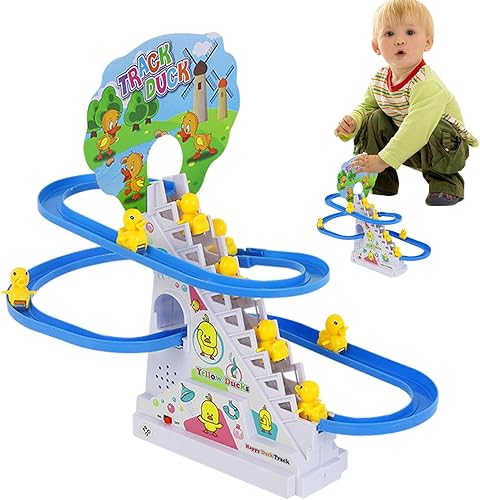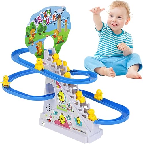 Simple to Use: With battery operated design, our Roller Coaster Toy effortlessly slides along the track and turns smoothly, making it a thrilling experience for kids. Plus, the surprise element of the duck climbing stairs