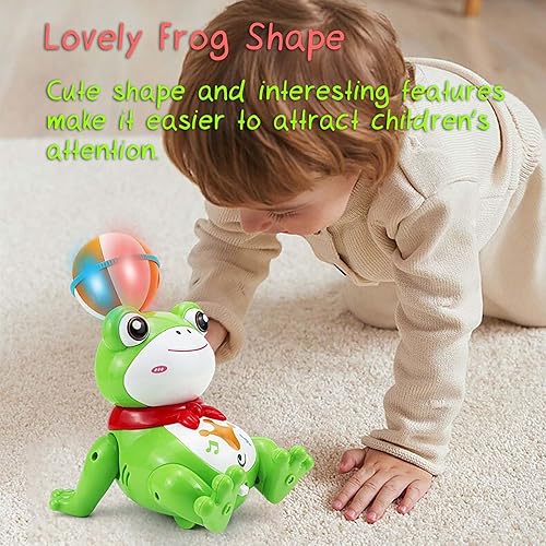 Cool Lighting and Music: The ball on the frog's head not only rotates 360 degrees, but also emits lights of different colors. In addition, this frog toy also plays dynamic music when working, which is easier to attract children's attention.