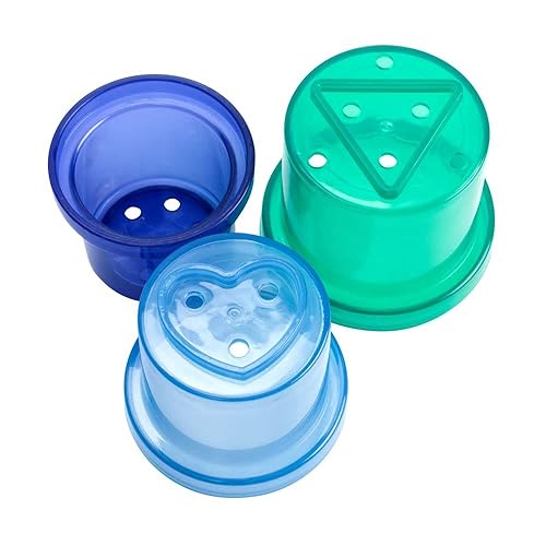SAND AND WATER PLAY: Each cup has a basic shape embossed on the bottom and is great for stamping in sand or dough. Holes in the bottoms of the cups allow water or sand to run through for more explorat
