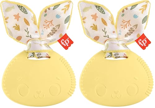 Fisher-Price Baby Sensory Toy Snuggle Bunny Teether,BPA-Free with Fine Motor Activity for Newborns Ages 3+ Months (Pack of 2)