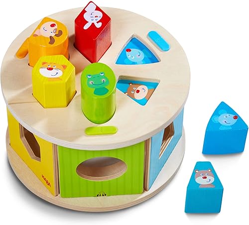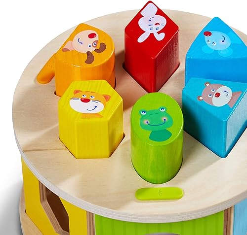 Every favorite animal has a place in this beautifully-crafted fun and colorful wooden sorting box and puzzle. Little ones can experiment and learn all about shapes, sizes, and colors while trying to fit the individual wooden shapes into the right shaped slot on the sides of the sorting box.