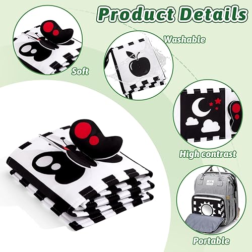 High Contrast Visual Stimulation: Features crinkle paper, sound elements, a hidden flower, and a baby-safe mirror to engage and stimulate visual and sensory development.