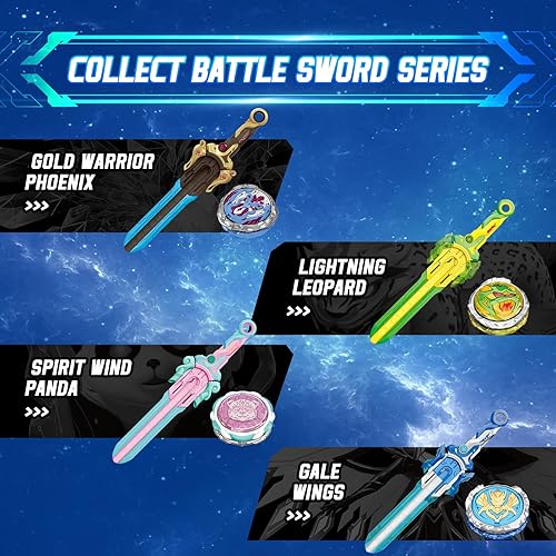 Easy to Use: Unlike other spin toys which are challenging for kids, our game top toys are easy to use; The design of sword shape launcher helps kids to aim the gyro and control the launching direction of the battling top.