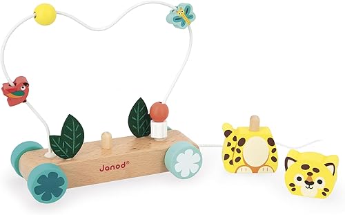 ON THE ROAD TO EXPLORATION: This wooden walk-along toy helps baby develop motor skills from 12 months. Perfect for their first steps, the pull-along jaguar is easy to take anywhere with its 50 cm string. Fun and colorful activities to easily stimulate baby's development!
