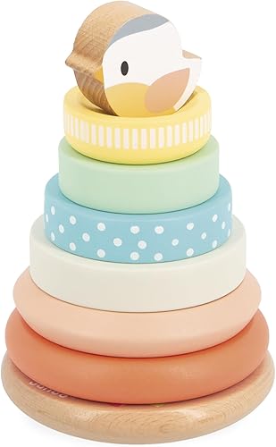 FIRST AGE TOY: This stackable wood toy helps toddlers develop their handling skills and discover colors. With its colourful design, it will become a beautiful decorative item in the baby's room.