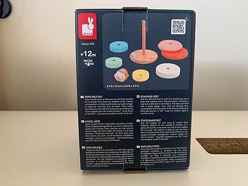 BIRD AND Nest: The last two pieces depict a small bird in its nest and the base is printed in a pretty decor. Baby can have fun recognizing colors and reform this tower endlessly!