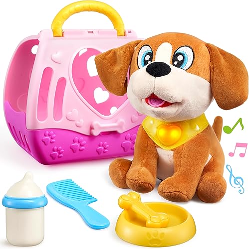 [Dog Toys] Interactive Plush Dog with Music: Adorable dog features an interactive music button with cheerful tunes, introducing young kids to music, counting, and the ABCs, making it a great learning toy.