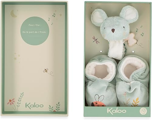 A gentle promotion of Kaloo: this premium set consists of a bracelet and sound shoes made of delicate velvet that will accompany your baby in their first steps to discovering sounds and movement.