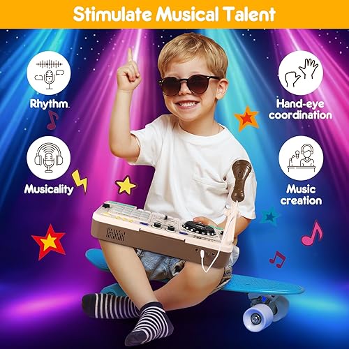 [Cultivate Musical Talents] This DJ set helps cultivate children's musical talents. The diverse combinations of sounds allow kids to experiment and develop their music - creation abilities. As they explore different sound permutations, they'll gain a deeper understanding of musical elements, from melodies and rhythms to harmonies.Let the creativity flow and transform the living room into a vibrant concert venue. It's bound to become an unforgettable experience that will leave the little friends in awe