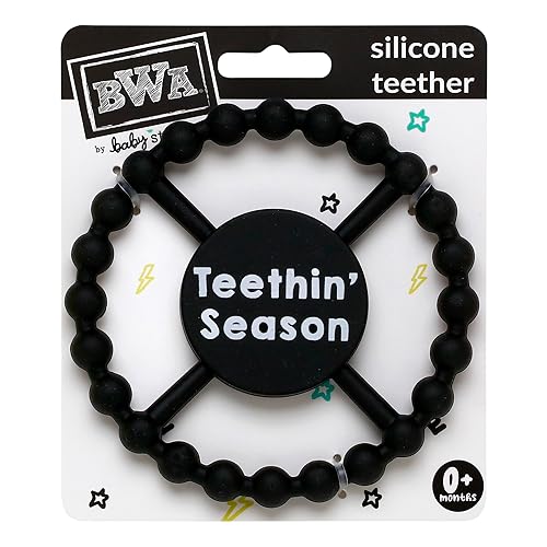 Round 4.5 inch teether features a flexible, easy to grip design and a "Teethin' Season" message