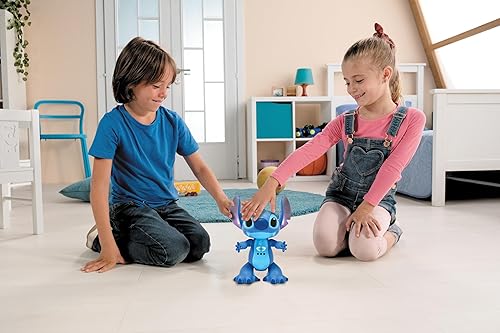 INTERACTIVE GAME WITH LEXIBOOK DISNEY STITCH TOY: Control Stitch with a surfboard-shaped remote or gesture control in bilingual English and German modes. Choose between walking and gliding for dynamic fun.