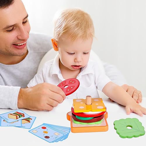 Ideal Gift: With illustrated sandwich cards and step-by-step guides, kids can play as customers and follow the menu to build burgers. Fun, educational, and safe, this Montessori toy is perfect for boys and girls