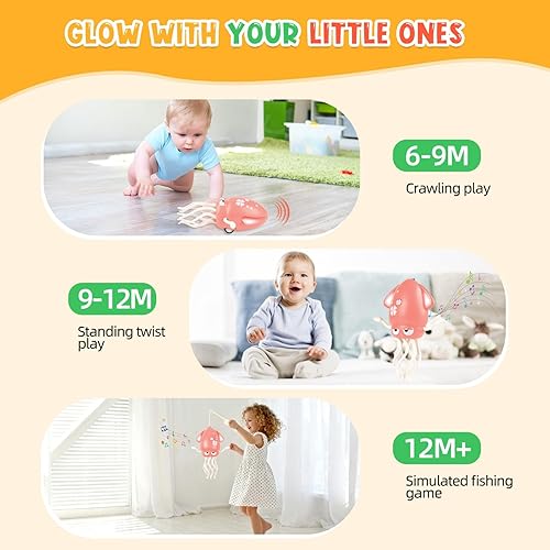 【Multifunctional Play】The electric crawling octopus toy design three Interactive modes that can stand and crawl, and simulate a fishing function. Your little one will love it. The included toy fishing rod can be installed on a dancing octopus (fishing rod with no magnetic attraction function)