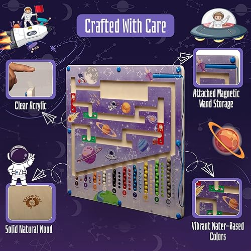 LEARN THROUGH PLAY - Let your toddler embark on a space adventure with this magnetic maze! Let them sort colorful planets & help astronauts return to Earth, all while developing color recognition, counting, & motor skills.