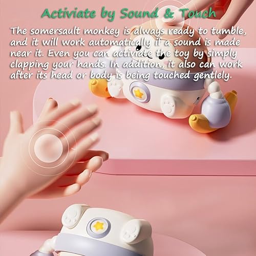 Activiate by Sound & Touch: The somersault monkey is always ready to tumble, and it will work automatically if a sound is made near it. Even you can activiate the toy by simply clapping your hands. In addition, it also can work after its head or body is being touched gentlely.