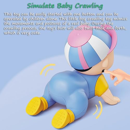 Simulate Baby Crawling: This toy can be easily started with one button and can be operated by children alone. This little boy crawling toy mimics the movements and postures of a real baby. During the crawling process, the toy's butt will also twist back and forth, which is very cute.