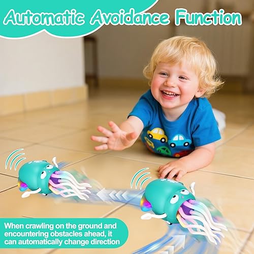 Smart Auto-Avoidance for 99% Crash-Free Play:This electric crawling octopus toy features advanced auto-avoidance technology that intelligently navigates around obstacles, making it the safest choice for curious toddlers! Unlike standard toys, our dancing octopus detects furniture, walls, and other objects with 99% accuracy, preventing frustrating collisions during play. The smart sensors allow uninterrupted tummy time sessions or floor play while keeping your little one engaged.