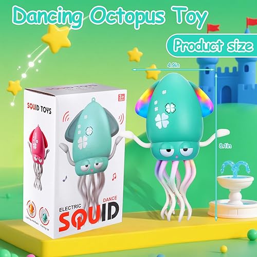 Multi-Sensory Stimulation with Lights & Music:Watch your eyes light up as this dancing squid toy comes alive with vibrant LED colors and cheerful melodies! The electric dancing octopus toy alternates between 6 soothing colors that stimulate visual development without being overstimulating. Gentle, rhythmic music complements the light show to create a calming sensory experience - ideal for tummy time or calming fussy periods.
