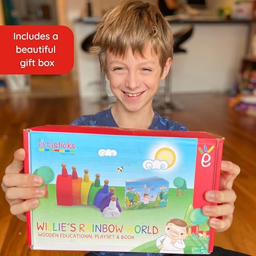 CREATIVE PLAY: This Montessori-inspired set encourages imaginative play and creativity, including versatile wooden rainbow stackers and peg dolls for storytelling and role-play.