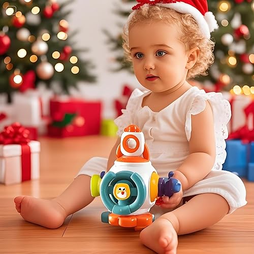 Montessori Busy Toys]: This Montessori toys includes 6 activity panels that offer different experiences, such as an extendable rocket, a rotating steering wheel, a simulated plug, a squeeze button, a pushable spaceship, and a spinning spinner. These are perfect montessori toys for 1 year old as they keep children busy and entertained for hours, fostering their creativity and imagination.Creative Fidget Toy