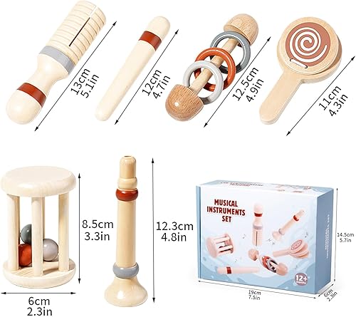 BABY MUSICAL INSTRUMENT SET OF: YUMOZER toddler musical toys are designed for children who love music, musical instruments include 1 wooden bead rattle, 1 articulating tube, 1 wooden ring rattle, 1 rattle, 1 trumpet. Noisemaker toys are great for developing fine motor skills, intellectual development, hand-eye coordination, interactive toys, music nurturing, parent-child communication, exposing your mini musician to different pitches, volumes and rhythms, the perfect introduction for young music learners