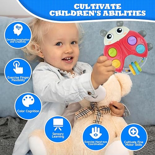 Montessori sensory toy: This Musical Ladybug Baby Toy promotes fine motor skill development through push-in and pull-out actions. Each push-out triggers amusing sounds, captivating your baby's attention and offering rich visual and auditory stimulation. Made with food-grade silicone and plastic, it can also serve as a teether for your baby.
