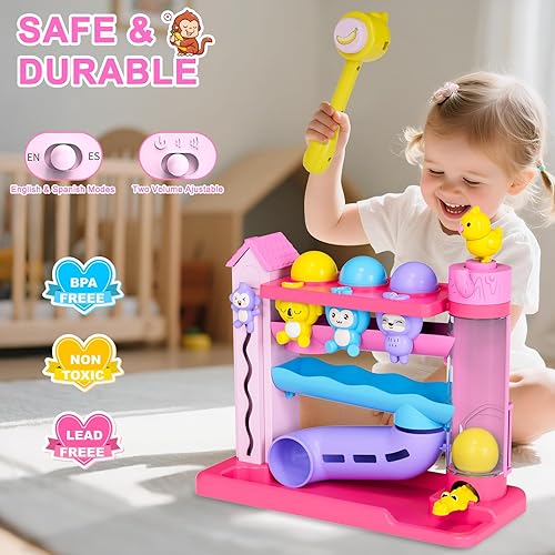 Musical Toy for 1-2 Year Old Girls - Montessori Busy Board & Ball Drop Toy