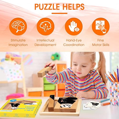 【4 IN 1 Creative Puzzles】: This 4 in 1 safari animal puzzle has 6 solid wood pieces. Each puzzle piece has 4 sides of realistic wildlife patterns. The puzzle also comes with a storage tray for easy handling during assembly, it is easy to store and protects the puzzle from loss or damage.