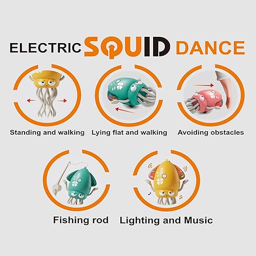 【Dancing & Crawling Modes】Watch it dance upright on tables or crawl floors—the wiggly tentacles fascinate babies! Includes a mini fishing rod leash for toddlers to guide it (no more runaway octopus!).