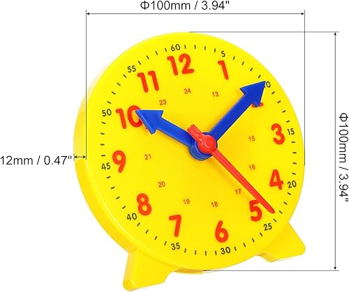 Color: Yellow, Blue, Red; Material: Plastic; Size: 100 x 100 x 12mm / 3.94 x 3.94 x 0.47 inch(L*W*T); Packing List: 1 x Teaching Clock