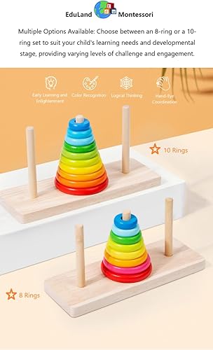 Classic Montessori Puzzle: Features a 10-ring Tower of Hanoi puzzle designed to enhance logical reasoning, problem-solving, and sequencing skills in children aged 3 and up.