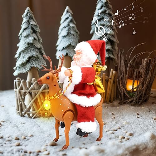 Charming Holiday Decor: Add a touch of whimsy to your Christmas decorations with our Santa Doll on Reindeer! This 9.8-inch musical doll brings festive cheer to any space, making it an eye-catching addition to your holiday decor.