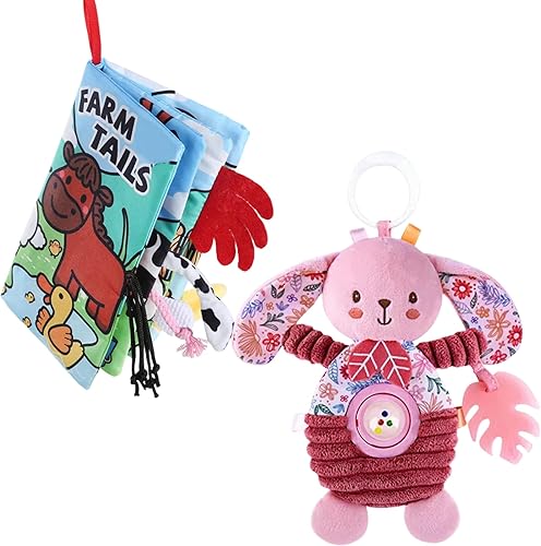 NEWBORN BABY GIFTS: Sensory toys for babies (crinkle/sounds/textures/teether), fine motor development tool; Baby boy girl gifts for shower birthday holiday Easter basket stuffers