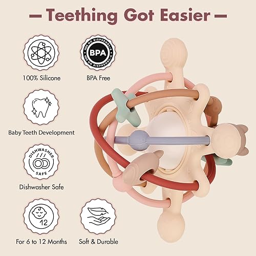 Ideal for Travel & On-the-Go: Compact and portable, these baby teething toys for 6-12 months are perfect for travel, keeping your baby entertained and soothed during car rides, trips, or outings with ease.