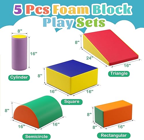 Versatile 5-Piece Set: Toddler climbing blocks complete set includes ramp, column, hoop, cube and ladder. Assembled dimensions: 46"L x 30"W x 8"H. Create multiple configurations to enhance crawling skills