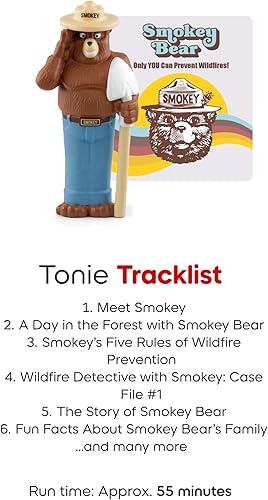 Includes Smokey Bear toy character with 1 song, 13 stories and total run time of approximately 55 minutes. Recommended Age Range: 5+, Language: English.