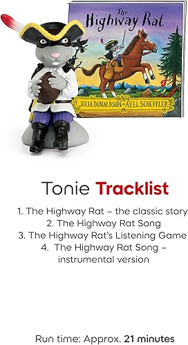 Includes The Highway Rat toy character with 2 stories, 1 game, 1 song, and total run time of approximately 21 minutes. Recommended Age Range: 4+, Language: English, Narrated by Imelda Staunton.