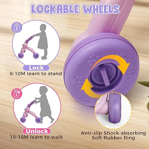 Maximum Stability Control:Unique weighted base prevents tipping. Lockable rear wheels turn the walker into a safe, stationary play station for beginners.