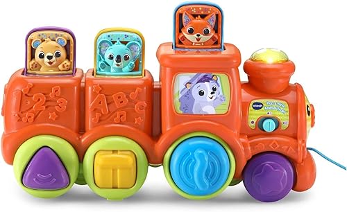 POP UP SURPRISES: Press, push, flip and twist the wheel switches on this train toy to make 3 cute peek-a-boo animals pop up, rewarding curiosity, encouraging play, developing fine motor skills and demonstrating cause and effect! Each pop will trigger the animals to introduce themselves with fun phrases and extra presses with trigger more interaction and learning excitement!
