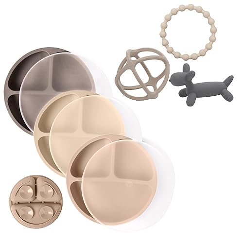 TEETHING RELIEF DUO: WeeSprout's teether and plate set offers a perfect combo for your little one's mealtime adventures. The handheld teether soothes sore gums, while the suction plates make self-feeding a breeze. It's practical parenting at its finest!