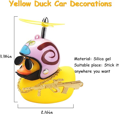 [UNIQUE DUCK] - The cool duck is equipped with a gold chain, a pair of glasses, and a helmet with a propeller, a special and unique rubber duck to decorating our car. The propeller will spin when the wind blows, looking cute and cool.