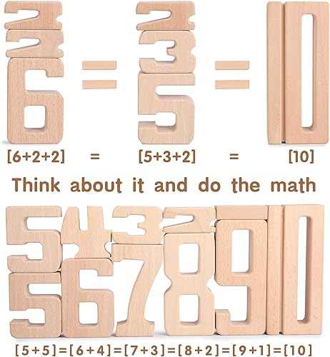[SAFETY & ENVIRONMENTAL PROTECTION] : Made of high-quality beech wood. Unlike other wooden numbers building blocks, our counting blocks are unpainted, large, easy to grab, and suitable for children's little hands. The surface of the wooden blocks is smooth and flat without sharp edges and corners, making it durable and not easily deformed